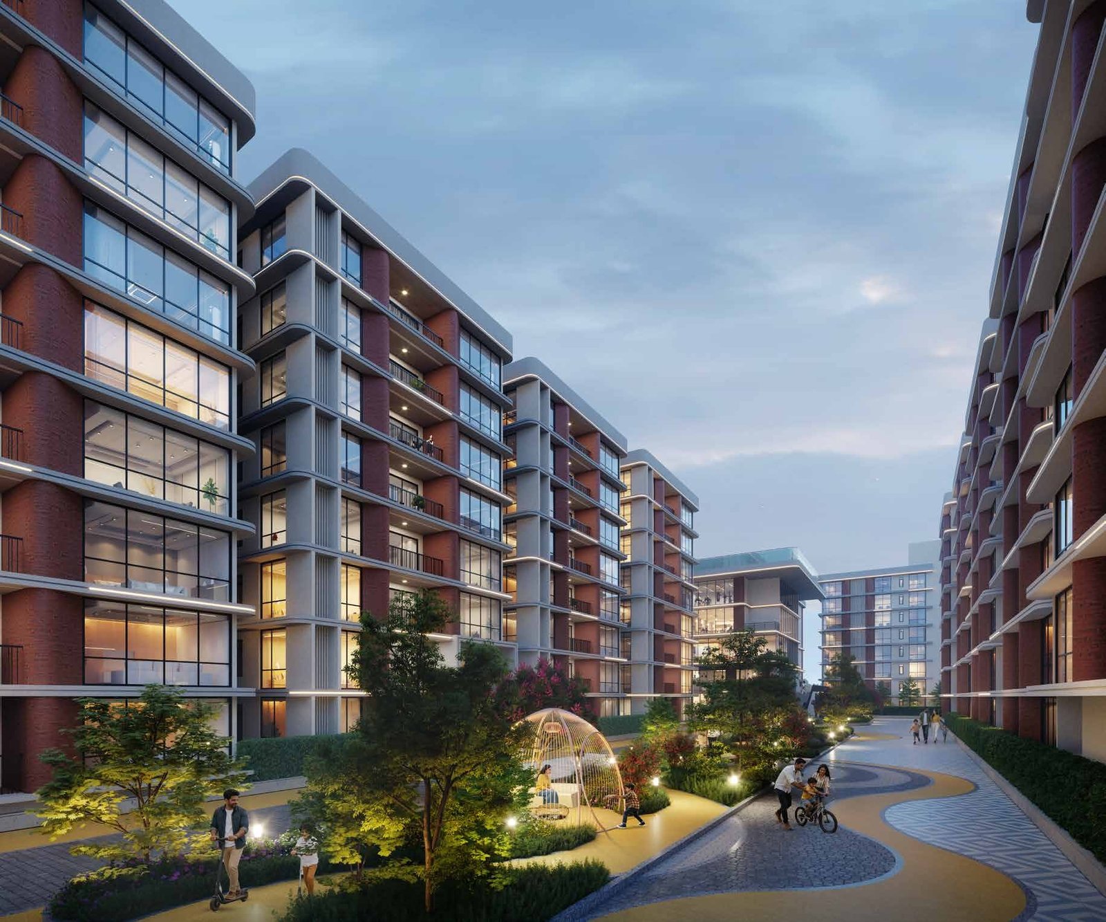 2. Set within expansive open spaces, the community is planned with 5.7 acres of greenery, including 5.3 acres of serene landscaped greens, allowing life to open UP to light, air, and calm.